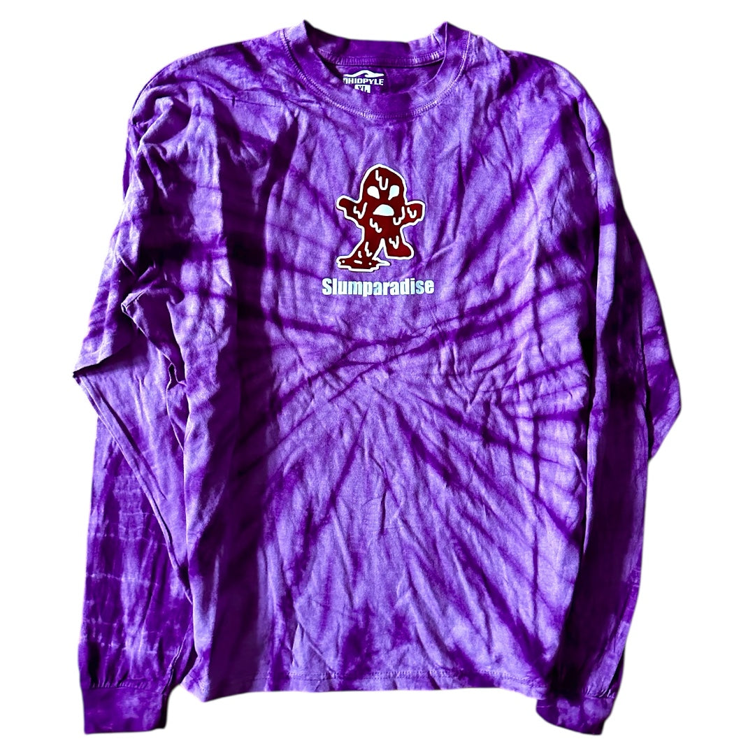 Random Tie-Dye Longsleeve in your size. Slummy graphic on the chest with Slumparadise logo.