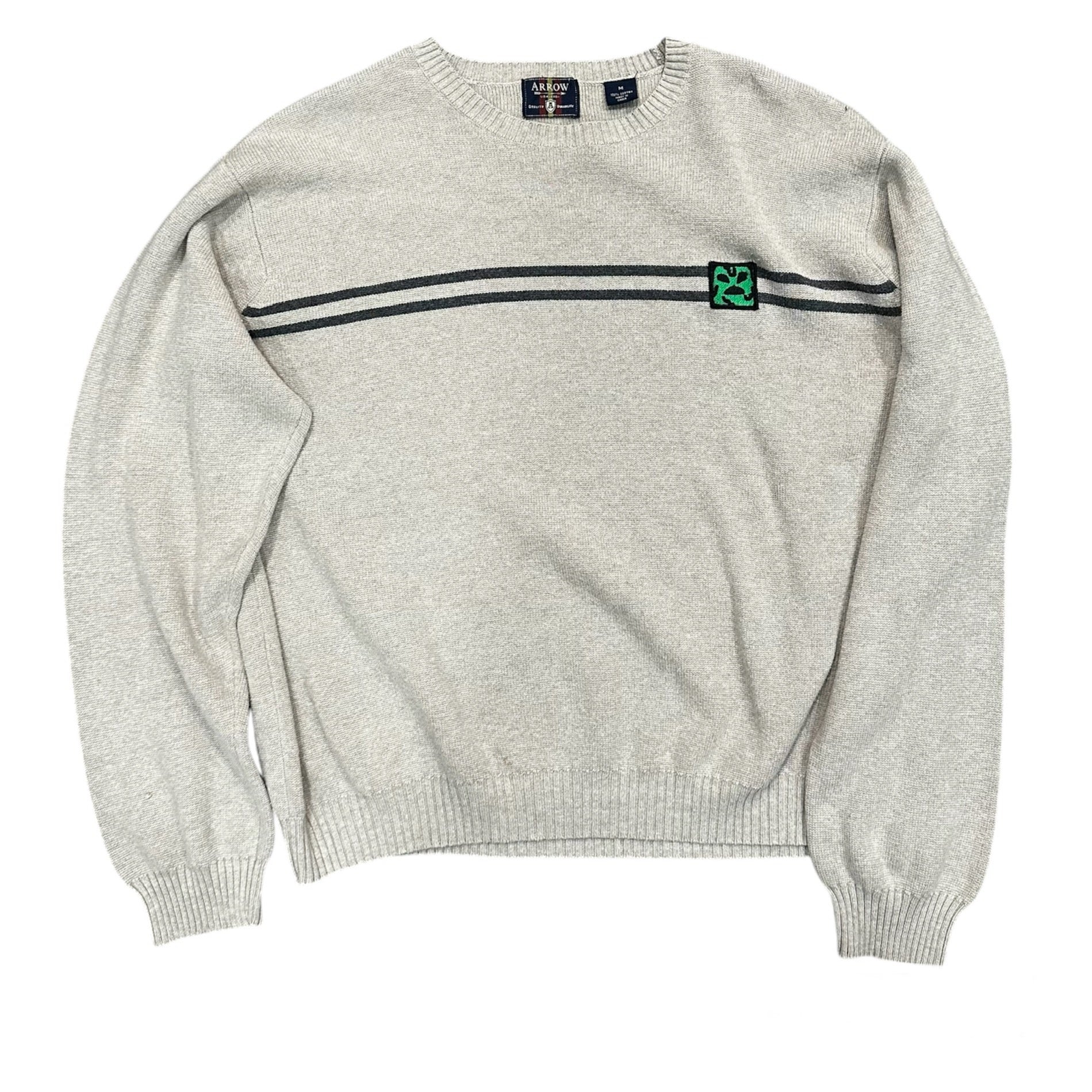 Stay toasty in this Reworked knit striped sweater 100% Cotton sweater with Slummy square patch stitched on the left chest. 1 of 1.